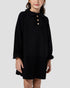 A-line Dress with front buttons. . With long-sleeved dress featuring a soft top and a contrast pleated skirt. It has a round neckline.