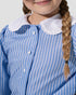 GIRLS’ STRIPED SHIRT WITH CONTRAST COLLAR. FEATURING A PETER PAN COLLAR IN WHITE, LONG SLEEVES WITH BUTTONED CUFFS, AND A FRONT BUTTON CLOSURE. DESIGNED IN A LIGHT BLUE FABRIC WITH WHITE VERTICAL STRIPES FOR A CLASSIC LOOK. PERFECT FOR BOTH CASUAL AND DRESSY OCCASIONS.